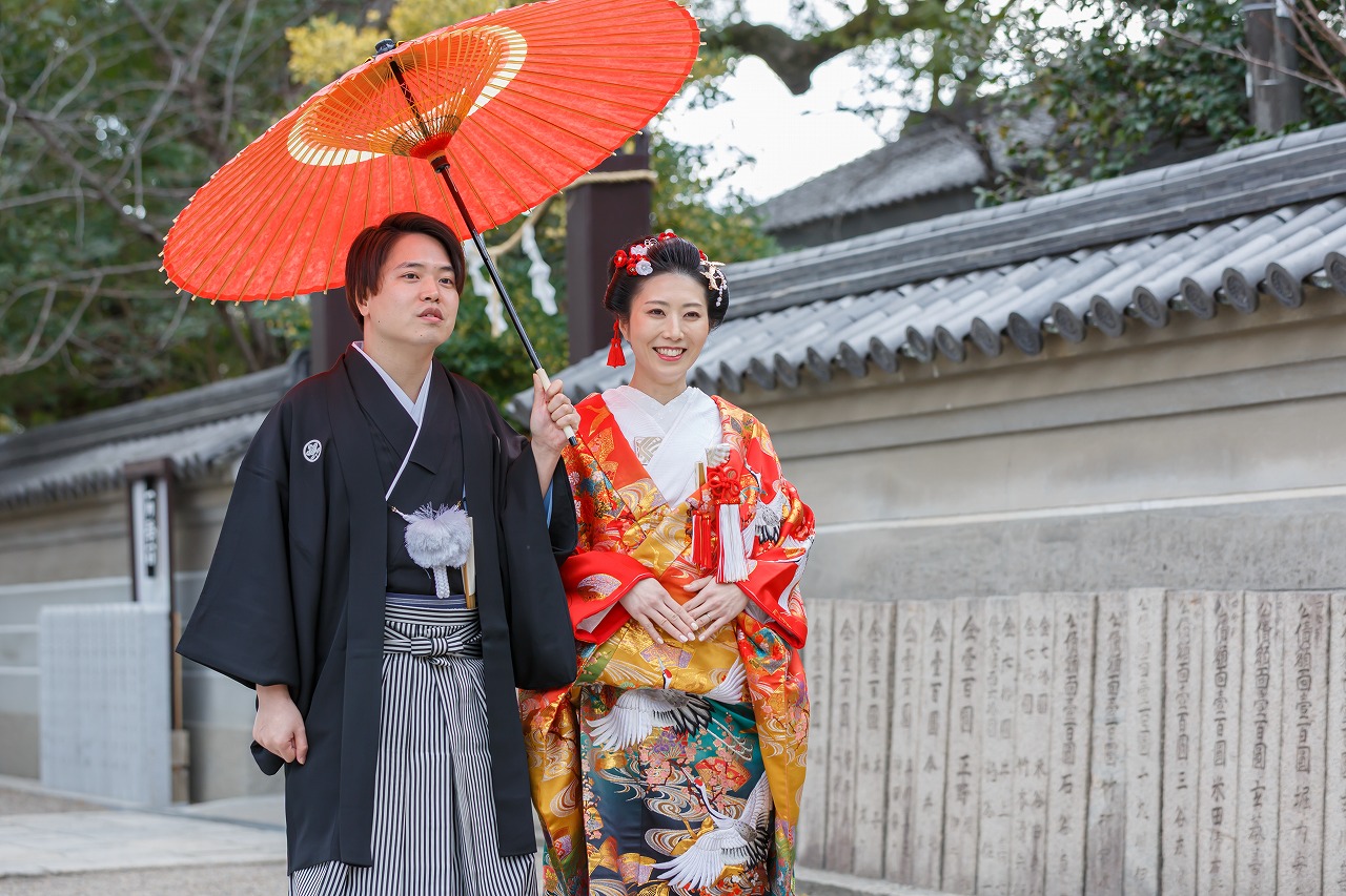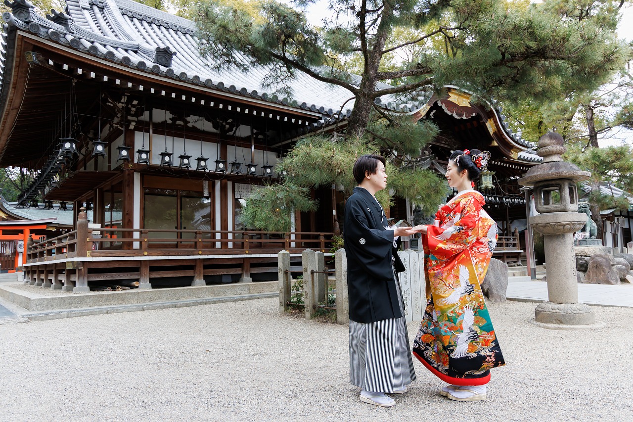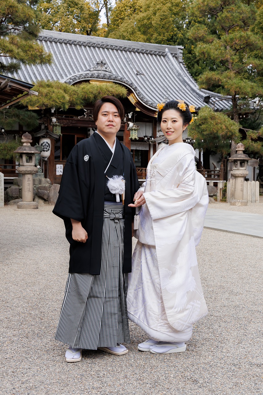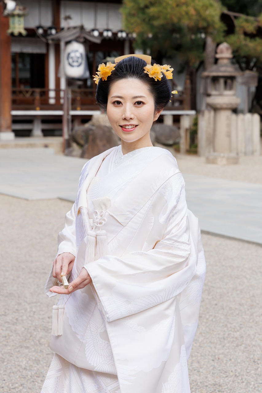 2026年01月31日 大阪市 杭全神社 白無垢(舞鶴)+綿帽子+新日本髪 色打掛(光琳舞扇) 大阪市 杭全神社 白無垢(舞鶴)+綿帽子+新日本髪 色打掛(光琳舞扇) 2026.1・31 新日本髪とべっ甲簪